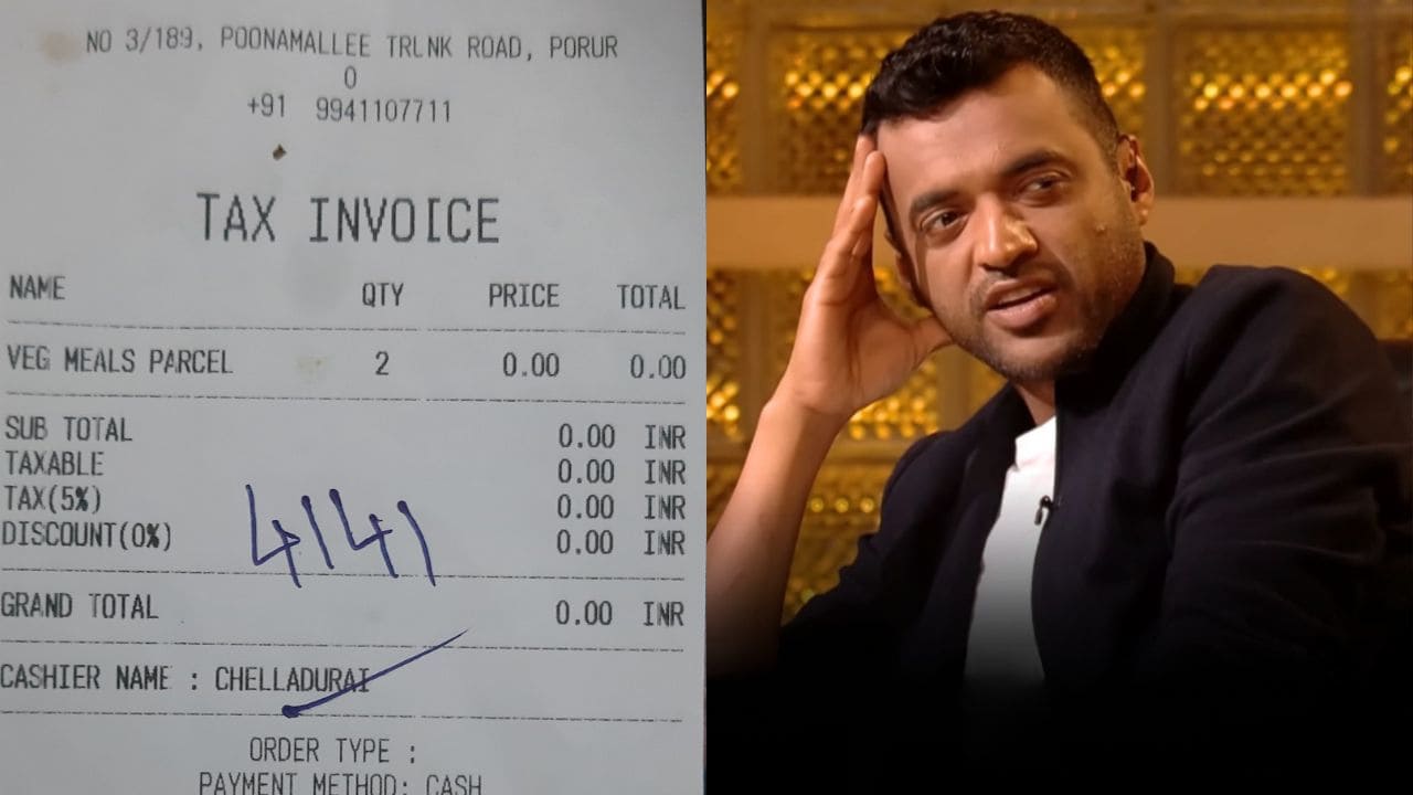 The matter was brought to light when the customer posted the bill on social media, tagging Zomato and its support handle. The order, received from Hotel Pandian at Porur, had two vegetarian meal parcels as per the order. The printed receipt showed a total of Rs 0, which also included zero values for subtotal, taxable amount, and tax.