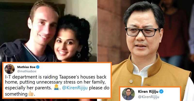 After the raids conducted at Taapsee’s property, Taapsee Pannu boyfriend Mathias Boe who was a former badminton player tweeted to Union Minister Kiren Rijiju asking for his help. Mathias tweeted that the raid has put stress not only on Taapsee but her family too. He tweeted,
