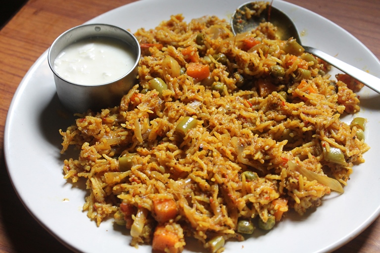 A product of Kampur in Assam, this lesser known version of Biryani is a colourful and wholesome meal on its own. It comprises of vegetables like peas, carrots, beans, potatoes and bell peppers which are cooked with the meat and then mixed with rice. It is an amalgamation of many flavours of both vegetables and meat along with nutmeg and cardamom, which are added before mixing it with rice.